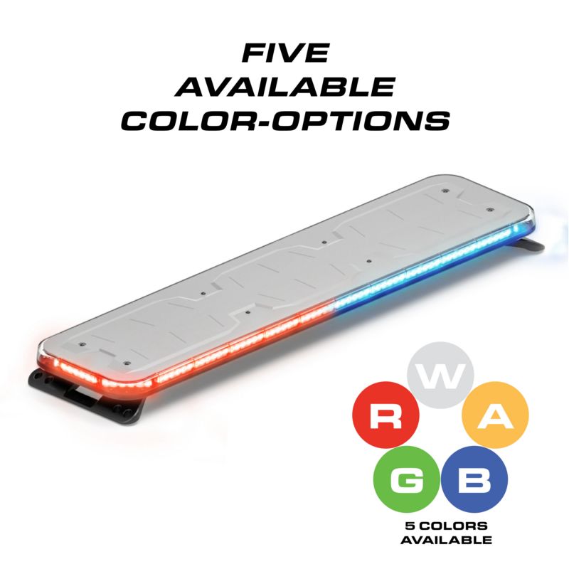 Single-color lightbars for emergency warning use. User configurable in Red, Blue, Amber, White and Green, the Fusion-S line offers a 40° degree optic that is 60° brighter than the previous Fusion family.