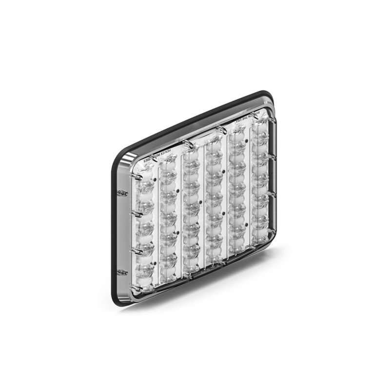 The Reverse Lux installs on the rear of the vehicle for boosted reverse signaling. Featuring a clear-colored lens and a 180° optic that provides wide-spread visibility, the Reverse Lux is ideal for public works, fire and EMS vehicles.