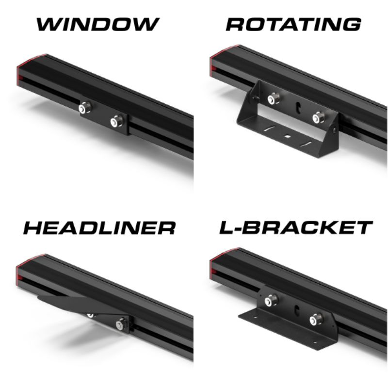 - Optional permanent, headache, hook and adjustable mounts