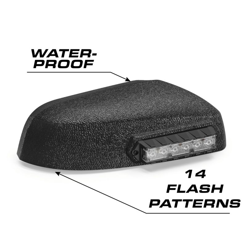 Slim and low-profile, the Fusion Mirror mounts securely to the vehicle's side mirrors and is uniquely angled to increase visibility, especially at intersections. User configurable in Red, Blue, Amber, White and Green, the Fusion-S line features a new and improved 40° degree optic that is 60° brighter than the previous Fusion family.