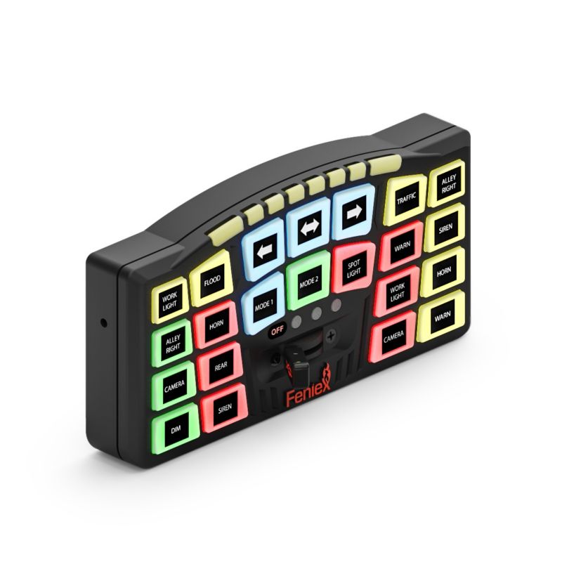 The SynQ-S is a full-size vehicle controller built for operators who need clear, direct access to their most important functions. Featuring 22 backlit buttons and an integrated slide switch, it provides fast, intuitive control with five selectable button colors for quick mode identification. The system powers on in just one second, giving users instant access to lighting, siren and auxiliary functions. A 200W dual-tone siren, 15+ programmable siren tones and 20+ audio commands are included through the paiRed SynQ Relay. EngineeRed for demanding fleets, the SynQ-S offers high-capacity current output control with 12 low-current outputs, 6 high-current outputs and 4 ground outputs, all PC programmable. With support for up to 96 Q Serial lightheads or 16 Quantum 2.0 devices, the SynQ-S delivers responsive performance, advanced configuration options and seamless syncing for emergency and specialty vehicles.